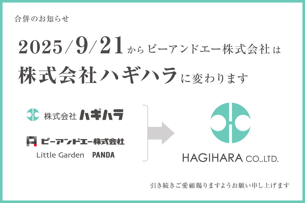この度、『ピーアンドエー株式会社』は『株式会社ハギハラ』と合併し、経営体制の強化を図ることとなりました。